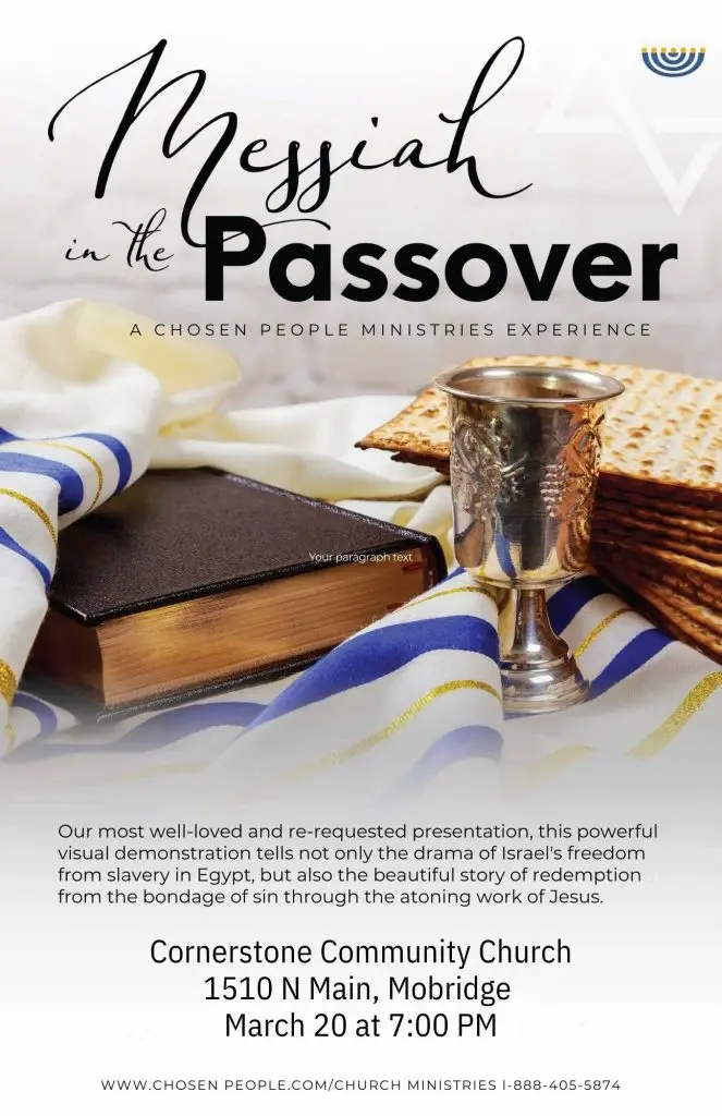 Messiah in the Passover is free for you to attend. There will be a freewill offering for supporting Chosen People Ministries. Please register